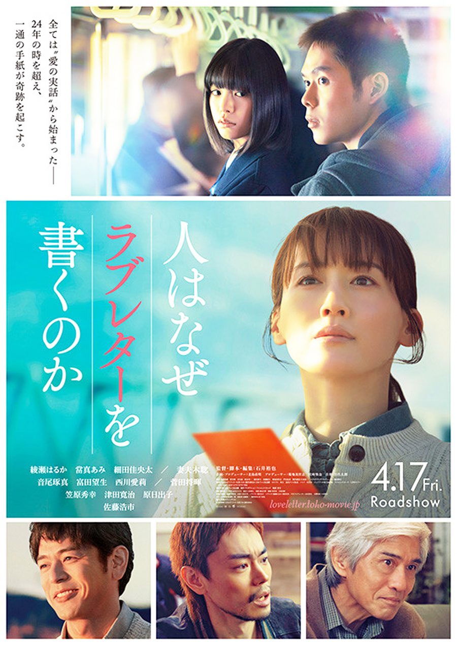 もう一つは、2000年3月に発生した地下鉄脱線衝突事故にまつわる実話を映画化した作品『人はなぜラブレターを書くのか』(石井裕也監督)=写真上。24年前、女子高生のナズナ(當真あみ)は、いつも同じ電車に乗る男子高生・富久信介(細田佳央太)に密かな想いを抱きますが、信介はその事故で亡くなってしまう。そして24年後、ナズナ(綾瀬はるか)は信介にラブレターを書き始める。その手紙が信介の父(佐藤浩市)のもとに届けられ、その手紙を通じて亡き息子の生きた証を感じ、知り得なかった在りし日々が蘇えってくる。愛する者を亡くして生き続けた二人(ナズナと信介の父)の邂逅により、24年前の真実とナズナが手紙を書いた理由が明らかになるというストーリーです。手紙を書く意味を考えたり、亡くなった人の存在が生き続ける感覚を体験できる感動作として、観客の心を揺さぶります(主題歌はOfficial髭男dism「エルダーフラワー」)。